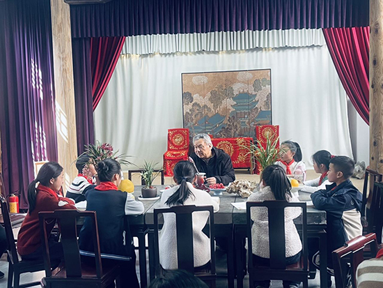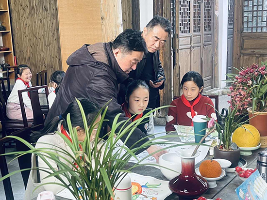 3月21日下午,諸暨市楓橋鎮越中書局內,諸暨市楓橋鎮社區教育學校組織楓橋鎮王冕小學“與賢同行,共繪夢想”主題繪畫、書法比賽獲一、二等獎的近三十位學生在副校長屠琪鋒、書畫教師樓偉杠、趙國忠的帶領下,在討論室內正專心致志地聽著中國美術家協會會員、國家一級美術師、河北省美術家協會副主席顏景龍的講座。