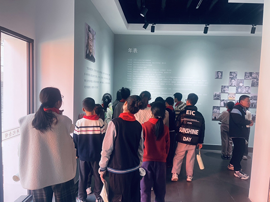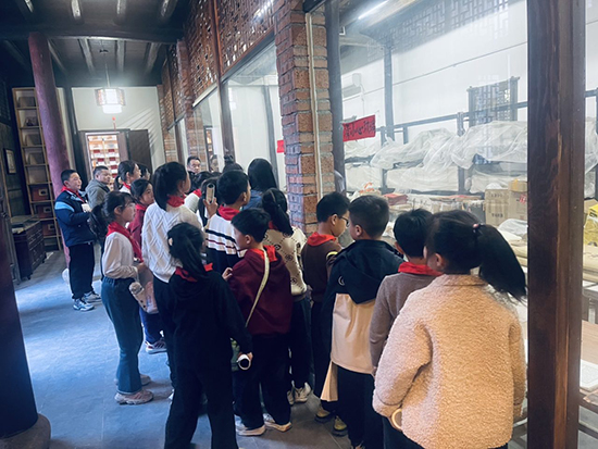 學生們在越中書局工作人員小劉的帶領下參觀了場景,饒有趣味地欣賞書局如何在宣紙上雕版印刷,對裝訂成冊的一卷卷書嘖嘖稱奇,認識了中華文化如何傳承與發展。來到邊上祝大年紀念館,驚嘆于展示作品的精美,為家鄉有這樣杰出的書畫教育家感到自豪,也為提升自己的書畫水平增添了力量,為創作好更多的優秀作品增強了信心。(孫文明)