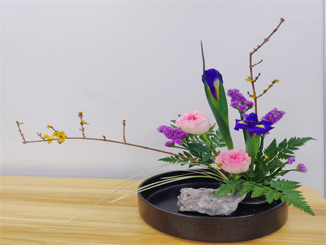 在傳授傳統(tǒng)插花的空間架構(gòu)原理時,姚紀(jì)蕓老師引入第一主枝、第二主枝、第三主枝的概念。她通過生動實例,向?qū)W員們闡明,第一主枝一般決定作品的高度與基本形態(tài),應(yīng)挑選挺拔、修長的花材;第二主枝起輔助與平衡作用,用以豐富作品層次;第三主枝則補充細(xì)節(jié),使整個作品更加飽滿。在老師的悉心引導(dǎo)下,市民學(xué)員們依照這一原理,結(jié)合自身個性與審美偏好,有條不紊地開啟藝術(shù)創(chuàng)作之旅。有的學(xué)員鐘情簡約風(fēng)格,僅用幾支百合搭配幾縷柳枝,便打造出清新脫俗的作品;有的學(xué)員喜愛繁花似錦的熱鬧,選用多種色彩艷麗的花材,構(gòu)建出絢麗多姿的花藝造型。