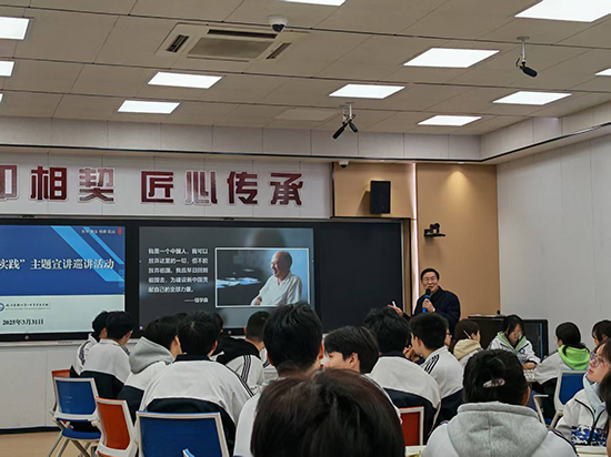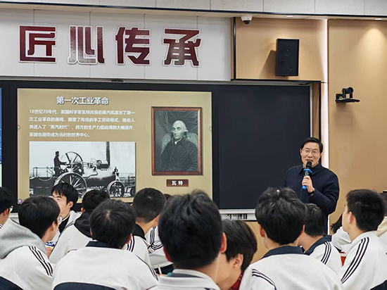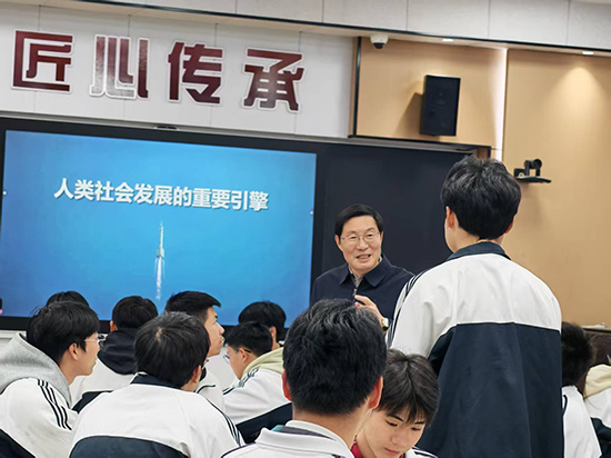 課堂上,徐須實從“何為科技創新”“科技創新,中國何為”“科技強國,我們何為”三個方面展開講述,深入淺出地闡述了科技創新的重要意義以及我國在科技創新領域取得的輝煌成就。他強調,科技創新是引領發展的第一動力,是推動民族復興的重要引擎。通過回顧四次工業革命的歷史脈絡,他生動描繪了我國從“跟跑”到“并跑”再到“領跑”的跨越式發展歷程,并結合我國在航天、人工智能、新能源等領域的重大突破,充分展現了我國科技創新的蓬勃活力和廣闊前景。徐須實的講述既有理論高度,又有實踐深度,引發了在場師生的廣泛共鳴與深刻思考。