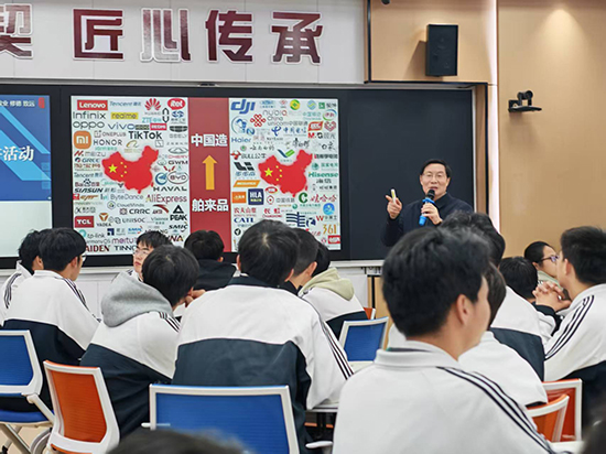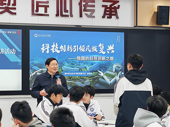 衢州職業技術學院黨委書記徐須實專程來到衢州第二中專,他為區域中高職一體化家具設計與制作、機械加工技術專業的學子們帶來了一堂生動的思政課——《科技創新引領民族復興——我國的科技創新之路》。江山市教育局副局長王以洪出席本次活動,與師生一同聆聽學習。活動由衢州第二中專黨委書記徐凌志主持。