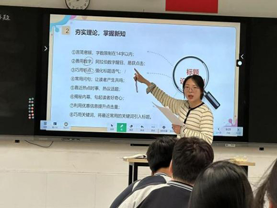 在電商直播課堂上,學校吳紫鈺老師以真實項目驅動課堂,解析《電商直播——商品推薦》技巧;慈溪職高張佳蕓老師通過《打造爆款標題 抓住流量密碼》案例,揭秘流量密碼,課堂互動熱烈,彰顯“產(chǎn)教融合”特色。