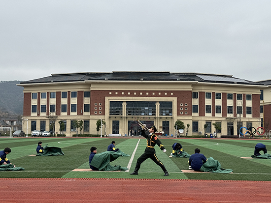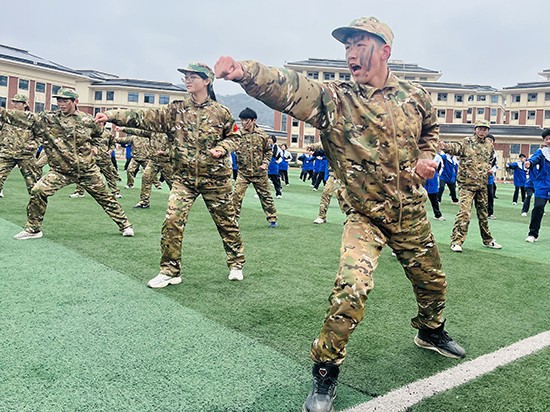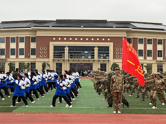 隨后,學(xué)生們組成整齊方陣,以伐矯健有力的步伐,響亮的口號,彰顯青春蓬勃朝氣與團結(jié)協(xié)作精神,展現(xiàn)校園軍事化管理對紀(jì)律性和團隊意識的有效培育。緊接著軍體拳展示中,同學(xué)們動作剛勁有力、整齊劃一,喊聲震天,充分展現(xiàn)出堅韌不拔的意志和過硬軍事素養(yǎng)。