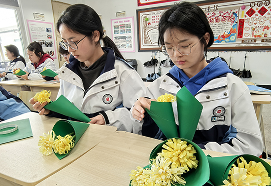 活動前夕,師生們懷著崇敬之情,親手折疊黃色紙菊花。每一片花瓣都凝聚著對烈士的深切追思,每一朵紙菊都寄托著青春的莊嚴(yán)承諾。手工制作的過程,讓同學(xué)們更加懂得珍惜當(dāng)下和平生活的來之不易。