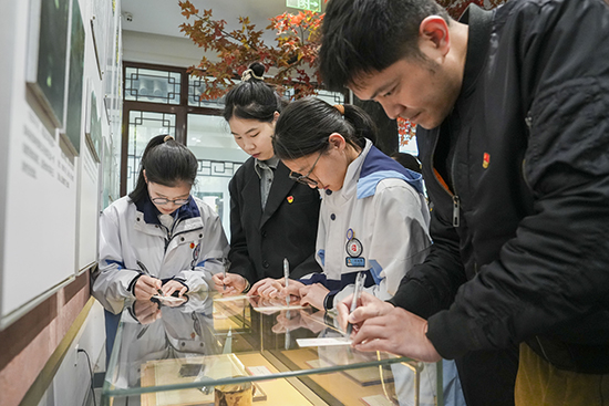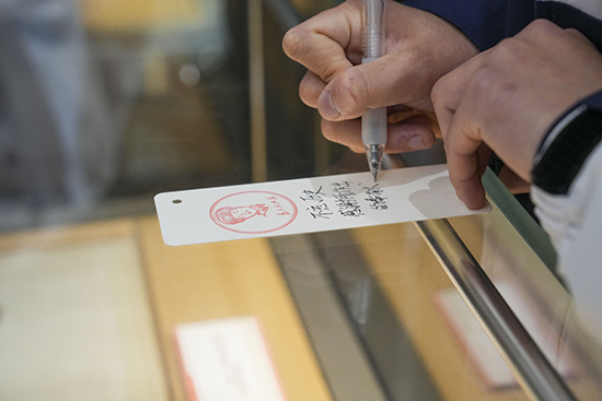 師生們在特制的書簽上寫下對革命先烈的寄語。“山河已無恙,吾輩當(dāng)自強(qiáng)”“革命精神永存,紅色基因代代傳”等,一句句真摯的話語,表達(dá)了新時(shí)代師生對革命先烈的崇高敬意和繼承遺志的堅(jiān)定決心。