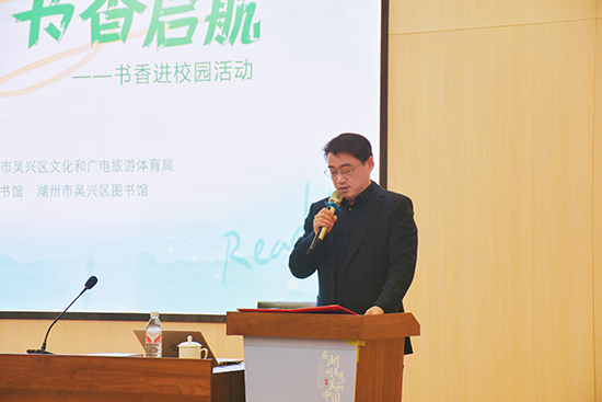 接著,丁建萍副局長向師生們介紹了吳興區(qū)圖書館概況與特色品牌活動,她表示,非常期待通過“分館共建”“公益實踐”等創(chuàng)新模式的探索,實現(xiàn)吳興文脈與教育使命的深度融合。