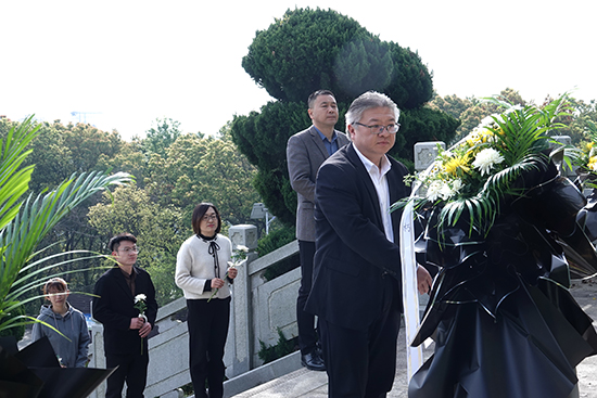 在莊重的音樂聲中,校黨委書記姚雁、校長蔡立柱向烈士紀念碑敬獻花籃。隨后,全體師生依次走向紀念碑,獻上手中的鮮花,每一朵鮮花都承載著一份深深的緬懷,寄托著對先烈們的崇敬與感恩之情。