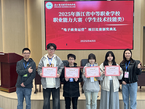以賽促學(xué),開啟電商人才新篇;以教強(qiáng)能,夯實(shí)行業(yè)進(jìn)步階梯。4月3日,2025年浙江省中等職業(yè)學(xué)校職業(yè)能力大賽“電子商務(wù)運(yùn)營(yíng)”賽項(xiàng)在浙江商業(yè)職業(yè)技術(shù)學(xué)院舉行。海鹽職業(yè)教育中心參賽團(tuán)隊(duì)22商務(wù)2班晏飄、22跨境班盧羿帆、23跨境班劉喬雅、23跨境班宣東昊等4名學(xué)生,與來自全省各地市的22組選手同場(chǎng)競(jìng)技,經(jīng)過2天激烈比拼最終榮獲團(tuán)隊(duì)一等獎(jiǎng)(第一名)的優(yōu)異成績(jī),并獲得了國(guó)賽資格。