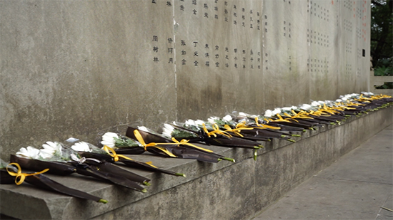 師生依次敬獻雛菊并繞行紀念碑瞻仰