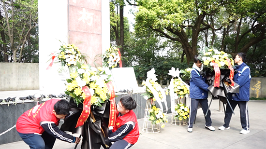 學院師生代表70余人齊聚臨平革命烈士紀念碑廣場,在莊嚴肅穆的氛圍中開啟紀念儀式。