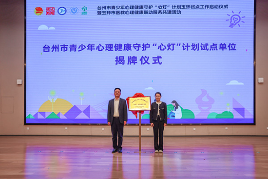 隨后,臺(tái)州團(tuán)市委副書(shū)記林輝輝與玉環(huán)市委副書(shū)記應(yīng)曙華攜手登臺(tái),共同為臺(tái)州市青少年心理健康守護(hù)“心燈”計(jì)劃試點(diǎn)單位——玉環(huán)市中等職業(yè)技術(shù)學(xué)校揭牌,標(biāo)志著一項(xiàng)重要的心理健康守護(hù)工作正式落地。