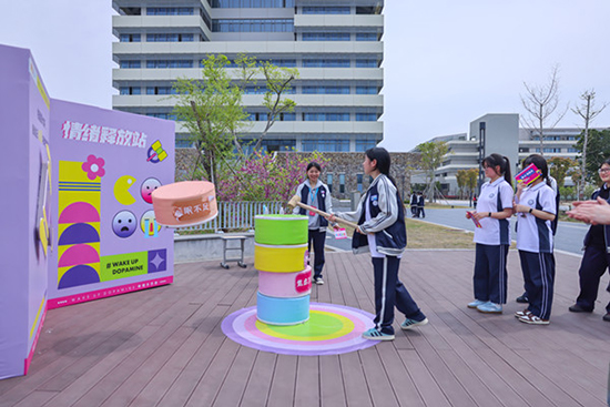 為了讓同學(xué)們的課余生活更加豐富多彩,同時(shí)營(yíng)造出積極健康的校園心理氛圍,此次活動(dòng)還別出心裁地在學(xué)校戶外湖邊策劃了一場(chǎng)妙趣橫生的“健心”游園會(huì)。游園會(huì)精心設(shè)置了一系列獨(dú)具匠心的心理健康主題游戲項(xiàng)目,如“吹爆煩惱”,讓同學(xué)們?cè)谌の吨嗅尫艍毫Γ?ldquo;討個(gè)彩頭”,帶來(lái)滿滿的心理能量;“情緒釋放站”,提供情緒宣泄的出口;“壓力變動(dòng)力”,助力同學(xué)們轉(zhuǎn)換心態(tài);“做自己的光”,引導(dǎo)大家發(fā)現(xiàn)自身的閃光點(diǎn)。這些項(xiàng)目成功吸引了眾多學(xué)生踴躍參與,現(xiàn)場(chǎng)氣氛熱烈非凡。