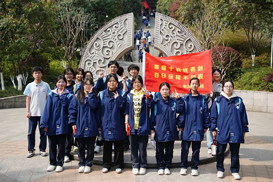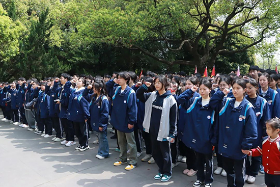 隊(duì)伍沿臨平山公園拾級(jí)而上,一路向陽而行。山間春色盎然,少年步履鏗鏘,歡聲笑語中交織著彼此的鼓勵(lì)。行至革命烈士紀(jì)念碑前,全體師生肅立默哀,以清明祭英烈的儀式感懷先輩精神。歷史與當(dāng)下的對(duì)話在此刻凝聚成無聲的誓言:以奮斗青春致敬英雄,以拼搏之姿接續(xù)榮光!
