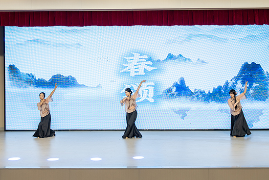 開幕式中,老師們也帶來了精彩的表演。莫盼軍老師演唱歌曲《最美的期待》,徐登峰、馮雪嬌老師與學生共同朗誦《世界贈予我們的》,周亦雯、周琳怡、倪天諾帶來舞蹈《春頌》。嘹亮的歌聲,舒緩的詩歌,優(yōu)美的舞姿,如陣陣浪濤激蕩著同學們的內(nèi)心,又春風化雨般滋潤著同學們的心田。