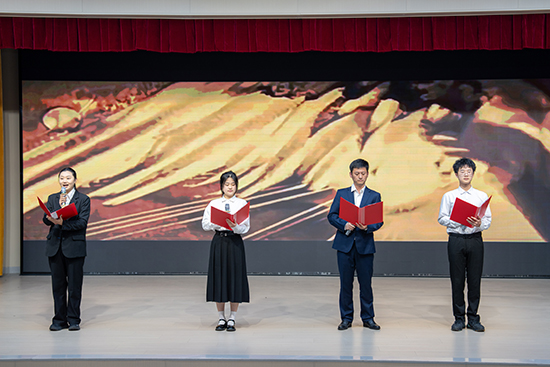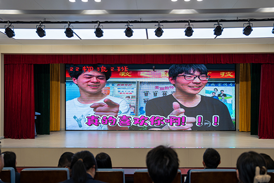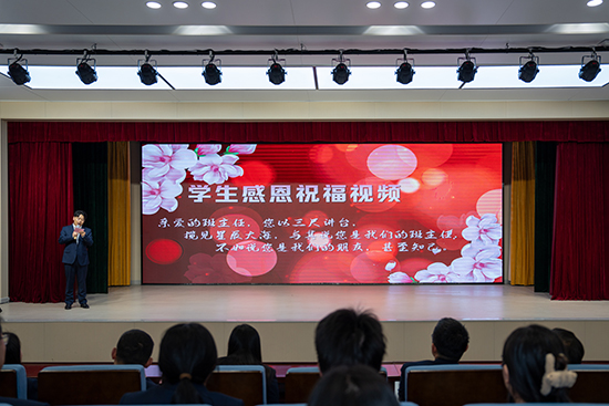 大屏幕播放班主任日常工作點滴視頻。從清晨的第一聲問候,到夜晚的安全叮囑,班主任們始終陪伴同學成長,從一個個珍貴而又平凡的畫面里,所有人深切體會班主任老師們的無私奉獻與深切關(guān)懷。