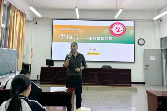 4月14日,慶元縣職業(yè)高級中學在階梯教室舉辦了一場主題為“明信片——沒有信封的信”的集郵知識講座。此次活動由校團委承辦,旨在豐富校園文化生活,提升學生的集郵知識和審美鑒賞能力。集郵協會全體成員以及各班學習委員的參加了本次講座,現場氣氛熱烈。