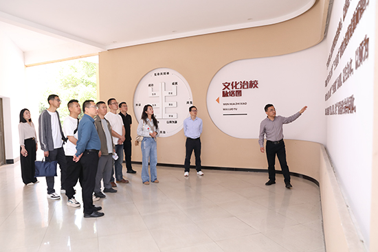 調(diào)研團(tuán)實地調(diào)研了學(xué)校“生”文化景觀帶和生命教育基地。學(xué)校的文化治校理念,“三生”教育(學(xué)會生存、學(xué)會生活、提升生命)的育人體系,得到了考察團(tuán)的一致贊賞。
