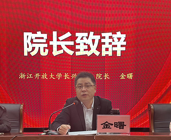9時(shí)20分許,開學(xué)典禮在優(yōu)美的浙開大校歌聲中拉開帷幕。金曙首先對(duì)新學(xué)員的到來(lái)表示歡迎,用三個(gè)優(yōu)秀校友的案例故事和三點(diǎn)建議,為大家解讀開放教育的時(shí)代使命與未來(lái)圖景。金院長(zhǎng)強(qiáng)調(diào)指出,“終身學(xué)習(xí)力”與“數(shù)字化賦能”是開放大學(xué)賦予每位學(xué)子的核心能力,并對(duì)大家提出殷切期望。