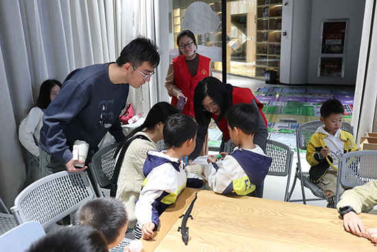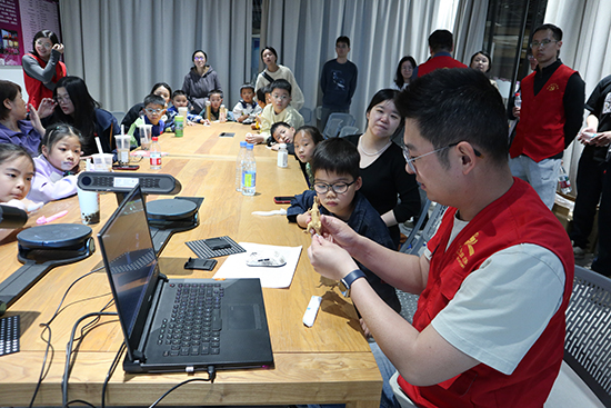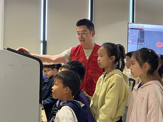 12名小朋友被分成2組,他們現(xiàn)場觀摩3D打印進程,其余4位黨員教師志愿者和4名學(xué)生志愿者也積極參與活動。這些黨員教師個個都是高技能人才,如浙江工匠褚佳祺、電工電子高級講師胡雙雙、機械高級講師郝婷婷和勵萍老師。有的志愿者負責向小朋友們進行一對一的現(xiàn)場答疑,有的志愿者現(xiàn)場給小朋友發(fā)放3D打印禮物。