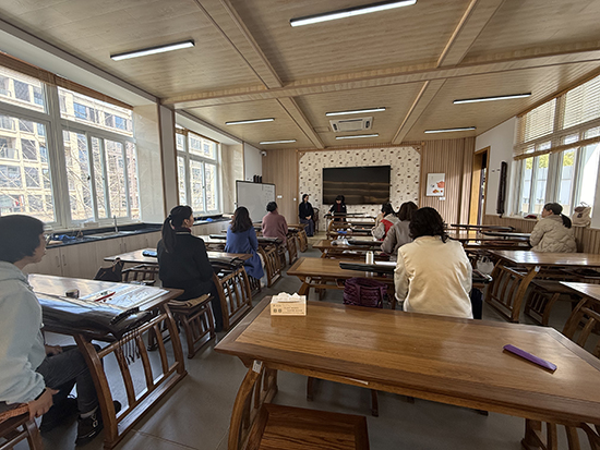 走進越劇表演班,山老師正在認真地指導學員吸氣、呼氣等基本功,老師一字一字地教,學員一句一句地唱,整個課堂秩序井然,氣氛活躍。
