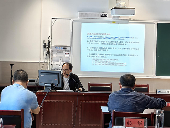 時(shí)院長首先宣布了會議的流程主要有兩項(xiàng):延遲退休的政策講解和班主任工作會。隨后,黨政辦主任彭華帶領(lǐng)大家集體學(xué)習(xí)了國家有關(guān)延遲退休的政策精神和具體內(nèi)容,同時(shí)為大家答疑解惑?,F(xiàn)場互動良好,使各位老師更加清楚了改革后的退休政策。
