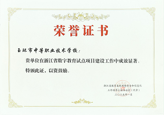 近日,浙江省教育廳公布數(shù)字教育試點驗收結(jié)果,玉環(huán)市中等職業(yè)技術(shù)學(xué)校在“浙江省數(shù)字教育試點——職業(yè)教育信息化標(biāo)桿校”建設(shè)工作中成效顯著,順利通過驗收。
