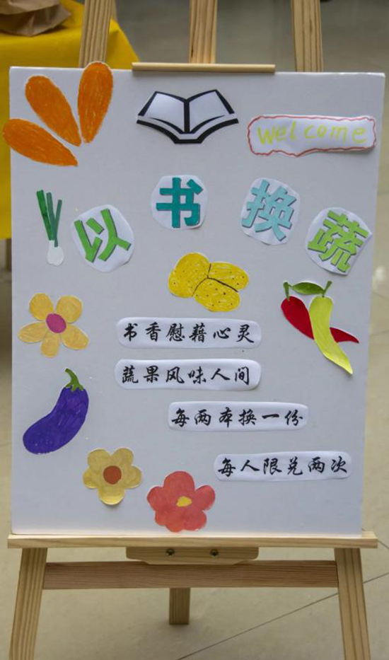 活動現場,職教中心的學生們帶著精心挑選的閑置書籍來到暨北社區,參與“以書換蔬”公益活動。居民們用自家種植的新鮮蔬果交換心儀的書籍,這一創新形式不僅實現了資源的循環利用,更促進了知識與愛心的傳遞。書籍的流動拉近了校園與社區的距離,也讓“奉獻、友愛、互助、進步”的志愿精神得到了生動詮釋。