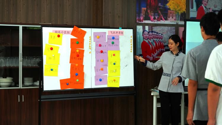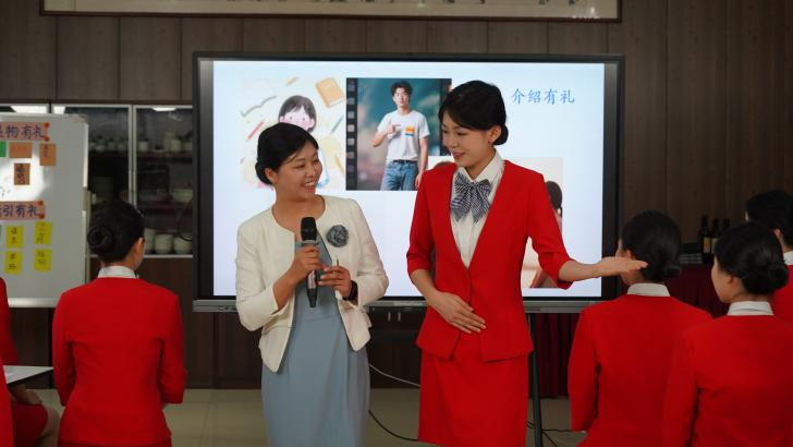 國(guó)貿(mào)學(xué)校帥嵐老師的《優(yōu)雅手勢(shì),禮潤(rùn)青春——校園中的手勢(shì)禮儀》課程,以生動(dòng)有趣的互動(dòng)方式,引導(dǎo)學(xué)生們認(rèn)識(shí)手勢(shì)禮儀在校園生活及未來(lái)職業(yè)中的重要性,課堂氛圍輕松活躍,學(xué)生們?cè)跉g聲笑語(yǔ)中收獲了實(shí)用的禮儀知識(shí)。?