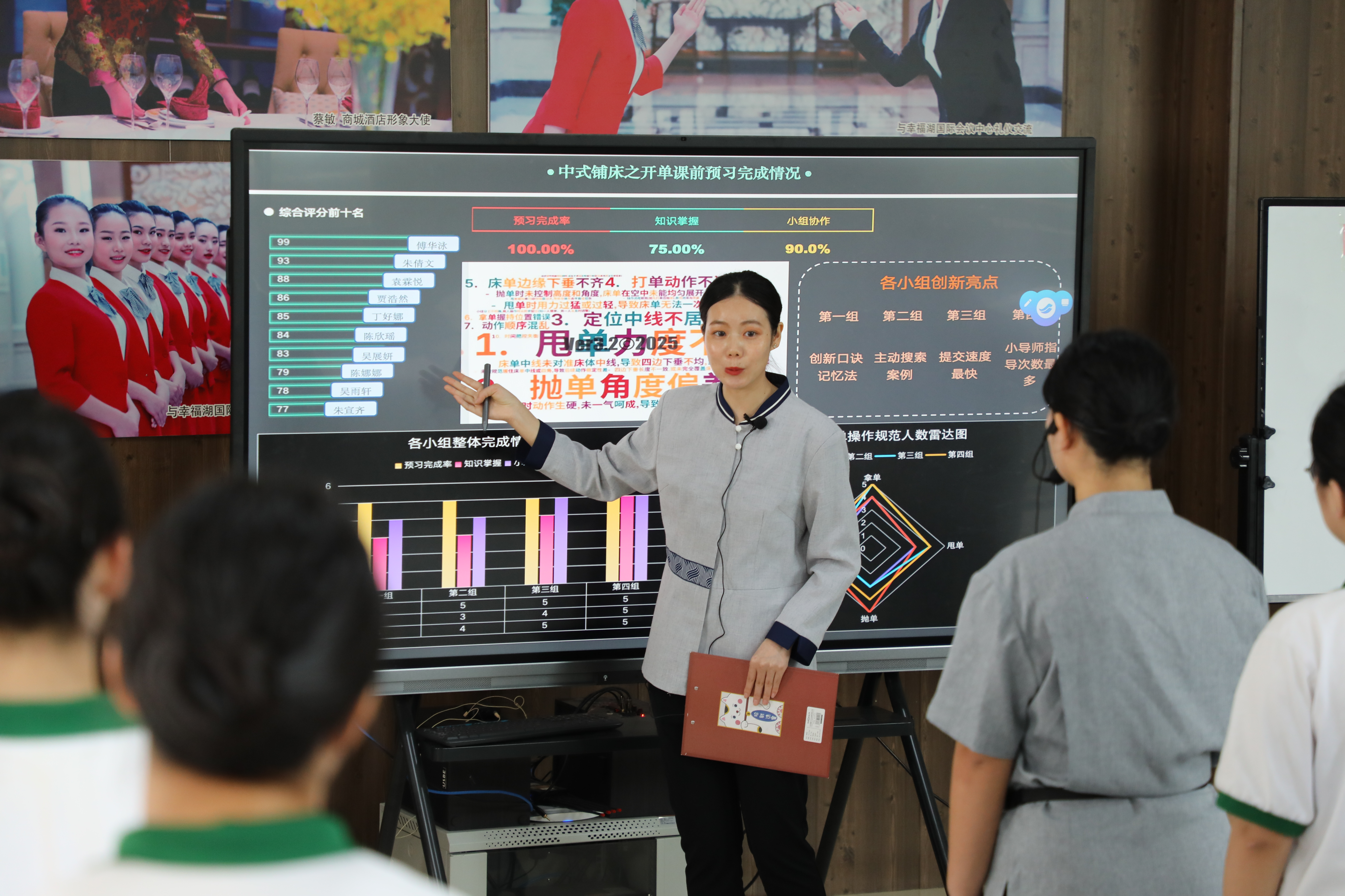 此次活動(dòng)的一大特色在于義烏、阿克蘇兩地教師的深度互動(dòng)交流。教研活動(dòng)全程連線,由義烏市教育研修院朱萍英主持開(kāi)展說(shuō)課評(píng)課交流。朱萍英憑借豐富的教研經(jīng)驗(yàn),有序引導(dǎo)兩地教師圍繞課程設(shè)計(jì)、教學(xué)方法、學(xué)生反饋等方面展開(kāi)深入探討。義烏市國(guó)際商貿(mào)學(xué)校的譚鳳老師率先分享:“中式鋪床看似簡(jiǎn)單,實(shí)則蘊(yùn)含著對(duì)細(xì)節(jié)和標(biāo)準(zhǔn)的極致追求。希望通過(guò)這次課程,能讓學(xué)生們不僅掌握技能,更培養(yǎng)他們精益求精的職業(yè)態(tài)度,也期待能從阿克蘇同仁的經(jīng)驗(yàn)中汲取新的教學(xué)靈感。”?