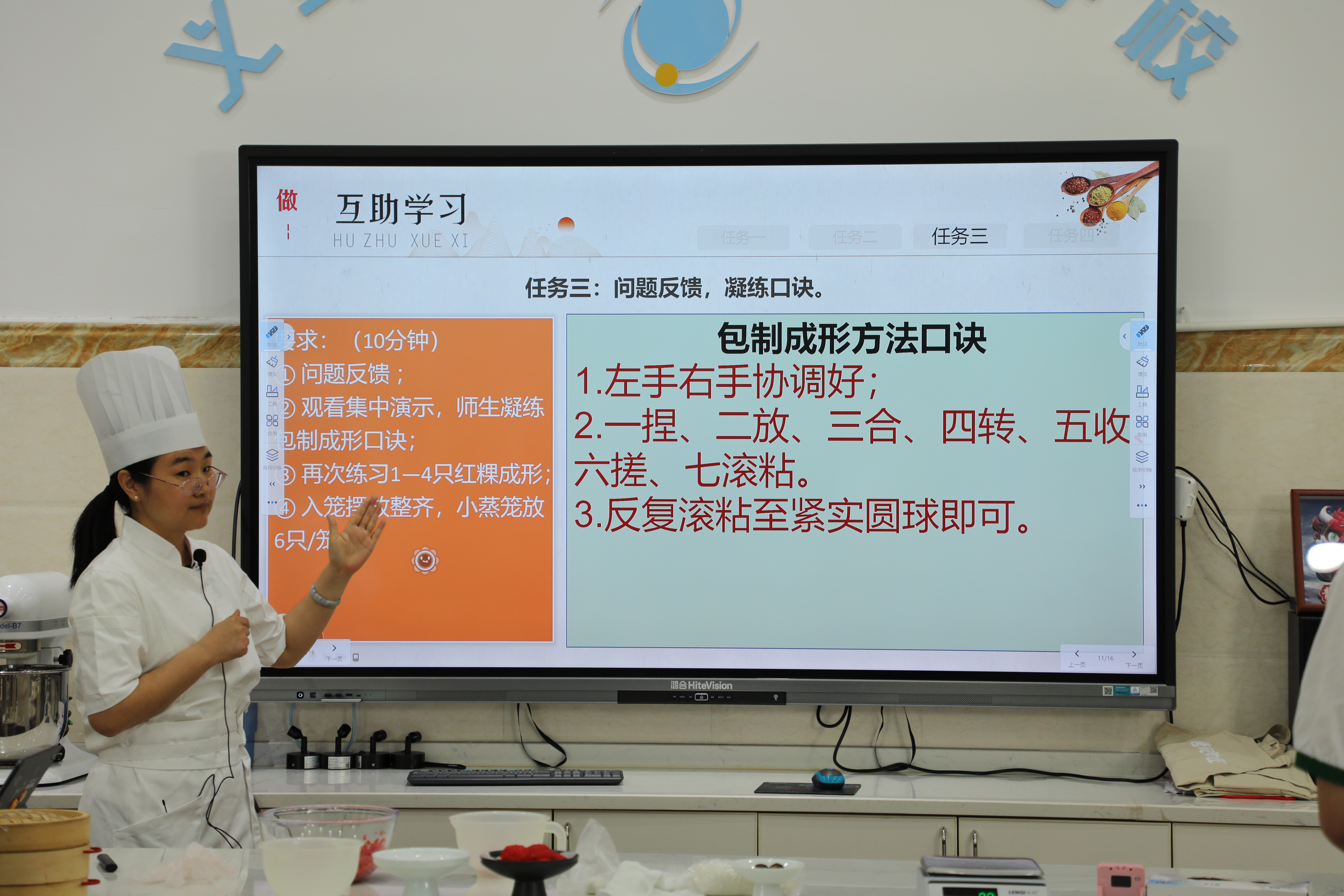 城鎮(zhèn)職校周丹丹老師則以《非遺點(diǎn)心——義烏楊梅紅粿的成形制作》為主題,帶領(lǐng)大家走進(jìn)傳統(tǒng)美食的奇妙世界。從原料準(zhǔn)備到制作工藝,從文化傳承到創(chuàng)新改良,周丹丹老師娓娓道來(lái),不僅讓學(xué)生們學(xué)會(huì)了制作非遺點(diǎn)心,更激發(fā)了他們對(duì)傳統(tǒng)文化的熱愛(ài)與傳承意識(shí);