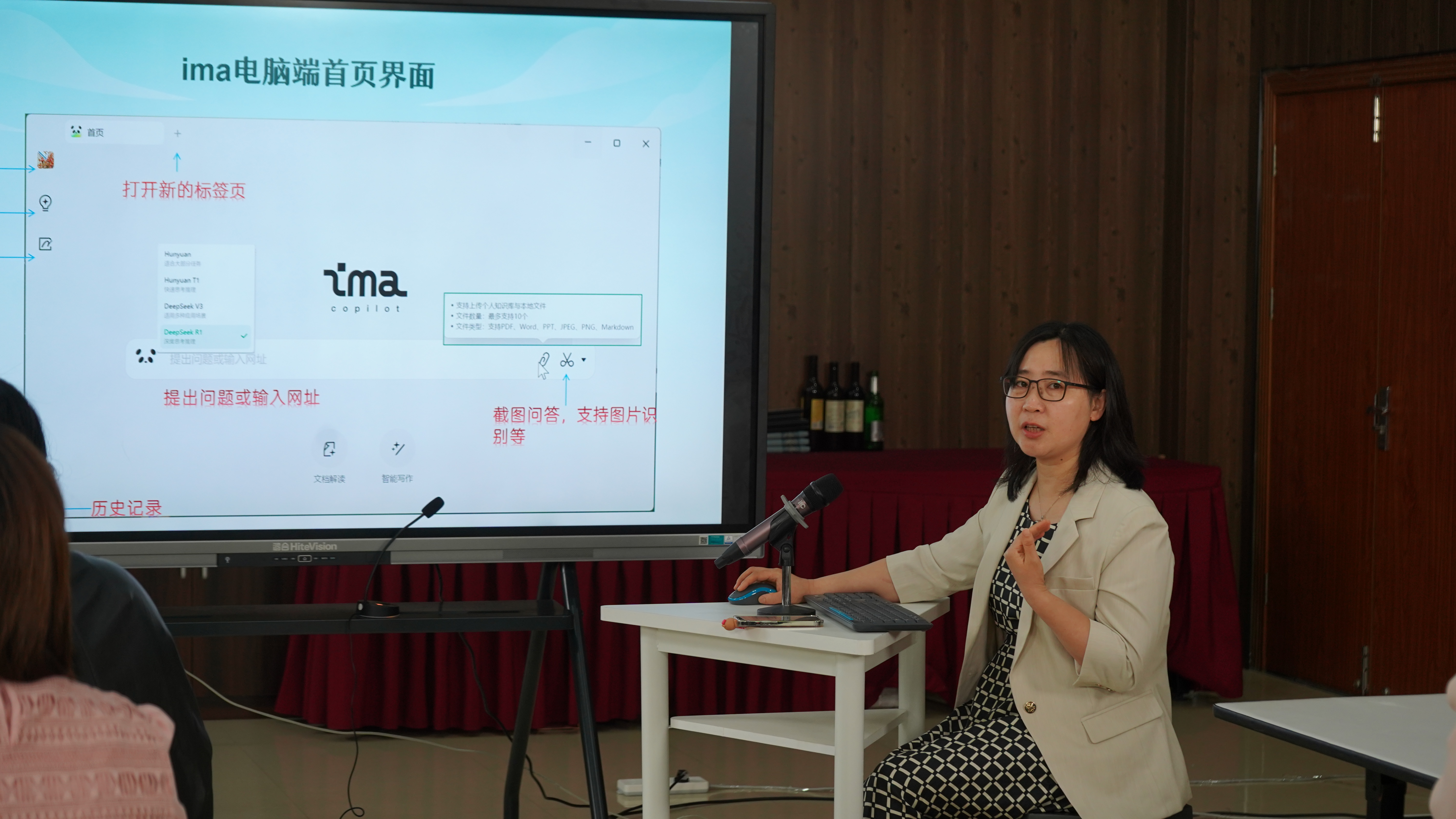 活動(dòng)伊始,前沿的教育技術(shù)分享便吸引了全場(chǎng)目光。來(lái)自教育研修院的馮國(guó)英帶來(lái)《AI賦能教學(xué)——ima知識(shí)庫(kù)在教學(xué)中的應(yīng)用》主題講座。馮國(guó)英深入剖析AI技術(shù)如何深度融入教學(xué)場(chǎng)景,以ima知識(shí)庫(kù)為核心,展示了其在教學(xué)資源整合、個(gè)性化學(xué)習(xí)指導(dǎo)等方面的強(qiáng)大功能,為教師們打開(kāi)了智能教育的全新視野,引發(fā)了大家對(duì)未來(lái)教學(xué)模式變革的熱烈探討。?