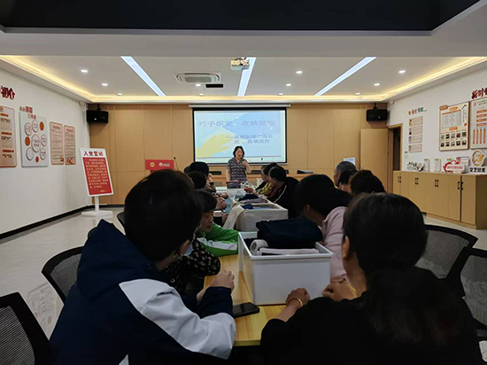 活動(dòng)現(xiàn)場,培訓(xùn)老師蔣素玲以通俗易懂的語言,結(jié)合日常生活實(shí)例,從空間規(guī)劃、物品分類、收納工具選擇等多個(gè)方面,詳細(xì)講解了家庭收納的實(shí)用方法和技巧。蔣老師通過圖文并茂的課件展示,生動(dòng)直觀地向居民們介紹了如何高效利用衣柜、櫥柜、玄關(guān)等空間,還分享了舊物改造、一物多用等小妙招,讓居民們深刻認(rèn)識到收納不僅是整理物品,更是一種優(yōu)化生活的方式。