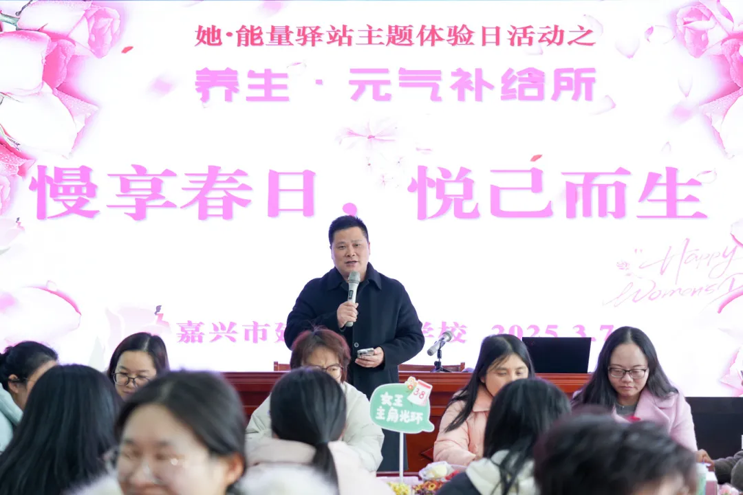 備受期待的“她?能量活動”絢麗開場。嘉興市中醫院藥劑科副主任醫生張燕親臨現場,為全體女教師們帶來了一場別開生面的春季養生茶飲講座。講座中,張醫生分享了不同茶飲的獨特功效及適配的各類體質,豐富且實用的內容讓大家如獲至寶,收獲滿滿。
