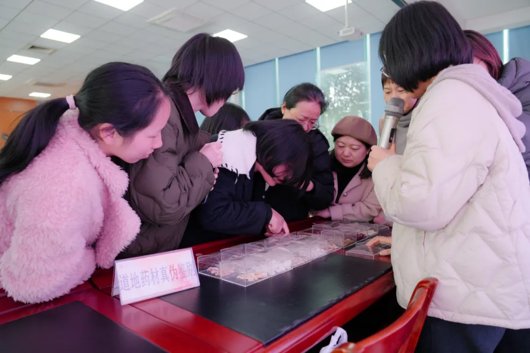 而第二個環節的藥材真偽鑒別競賽更是瞬間點燃現場氣氛,女教師們憑借剛從講座中學到的知識及自身的生活經驗,目光專注地審視著各類藥材樣本,積極搶答,在你來我往的熱烈互動中,真正學到了實用的養生知識。