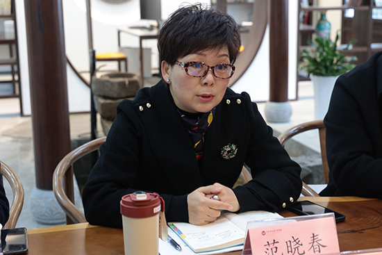 隨后,調研組在古建園大師工作室與校領導展開了深入交流。范曉春從學校的歷史沿革、基本概況、治理體系等多個維度,全面細致地介紹了學校的辦學特色與顯著成果。同時就提升管理效率、激發(fā)團隊潛能以及深化學校內涵式發(fā)展等方面表達了學校所做的努力與面臨的挑戰(zhàn)。