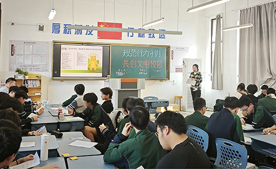 班會熱議話擔當,規則意識心中裝。根據主題教育月活動安排,24魯班3班班主任羅蒙婷、23施工大專5 班班主任馮夢珠、24裝飾2班班主任董金輝以及23軌交大專班班主任周震燚分別圍繞《學習雷鋒精神 勇擔責任使命》《筑牢規則防線 守護成長航線》《交通安全 文明出行》《法制學習 知法守法》的主題開設主題教育月校級主題班會課,進一步引導學生挺膺擔當、砥礪奮進。