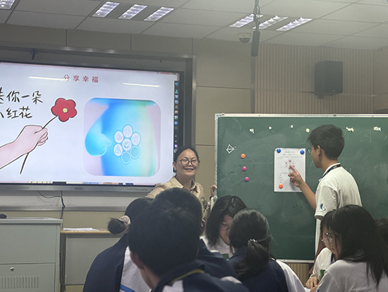 第二節(jié)課由三界中學(xué)李文倩老師執(zhí)教《邊界感:適可而止的藝術(shù)》。李老師巧妙借用“樹冠避羞”的自然現(xiàn)象,類比人際交往中的邊界意識(shí),引導(dǎo)學(xué)生思考如何在尊重自我與他人的前提下構(gòu)建健康關(guān)系。課堂通過“邊界地圖繪制”“拼貼邊界輪盤”等互動(dòng)活動(dòng),讓學(xué)生直觀理解邊界的多元類型。學(xué)生在體驗(yàn)中學(xué)會(huì)靈活調(diào)整邊界,既敢于表達(dá)個(gè)人需求,亦能共情他人感受,最終達(dá)成“讓心靈如樹冠般自由舒展”的成長目標(biāo)。