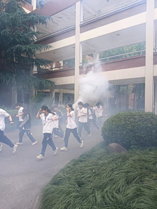 隨著一陣急促的警報聲響起,演練正式拉開帷幕。模擬地震和火災(zāi)發(fā)生時,教學(xué)樓瞬間晃動和彌漫濃煙,師生們迅速反應(yīng),按照培訓(xùn)要求,立即采取緊急避險措施。各班級學(xué)生在老師的帶領(lǐng)下,迅速、有序地從教室出發(fā),沿著預(yù)定的疏散路線,快速向操場安全區(qū)域撤離。整個疏散過程中,師生們行動迅速、配合默契,沒有出現(xiàn)擁擠、推搡等現(xiàn)象。各班級到達(dá)操場后,迅速整隊,清點人數(shù),確保每一名學(xué)生都安全撤離。
