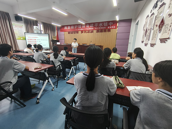 為提升學(xué)生安全認(rèn)知能力、規(guī)避危險能力和逃生自救能力,使學(xué)生掌握科學(xué)的自救、互救方法和技能,紹興市柯橋區(qū)平水鎮(zhèn)成人文化技術(shù)學(xué)校積極開展應(yīng)急救護(hù)普及培訓(xùn)進(jìn)平水鎮(zhèn)中學(xué)校園課堂。