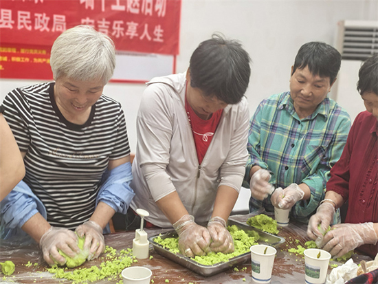 實操環節,老人們紛紛大顯身手。有的小心翼翼地將蒸好的綠豆泥過篩,力求得到細膩的口感;有的專注地往綠豆泥里加入白砂糖和玉米油,仔細翻炒,直到餡料變得濃稠適中;還有的拿著各式精美的模具,將粉團認真揉捏后填入其中,輕輕按壓,脫模時,一個個印著花朵、福字等圖案的綠豆糕躍然眼前。大家相互交流經驗,分享技巧,歡聲笑語不斷。