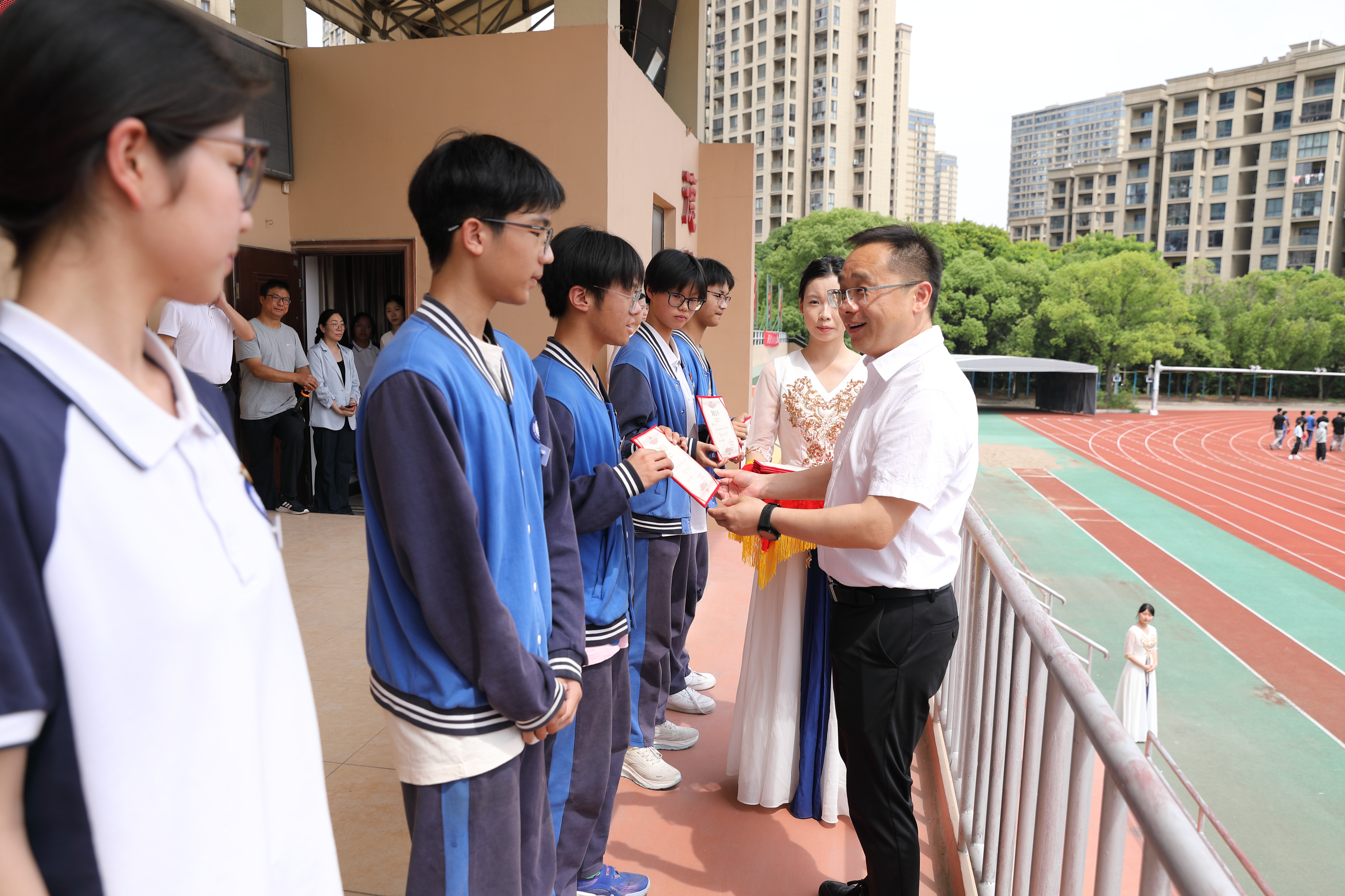 緊接著,校黨委副書記、校長蔡建為獲獎學生頒發榮譽證書,并與學生合影留念。伴隨著熱烈的掌聲,同學們依次登臺領獎,喜悅與自豪之情溢于言表。這份榮譽不僅是對他們過往努力的高度認可,更將成為激勵他們繼續前行的強大動力。