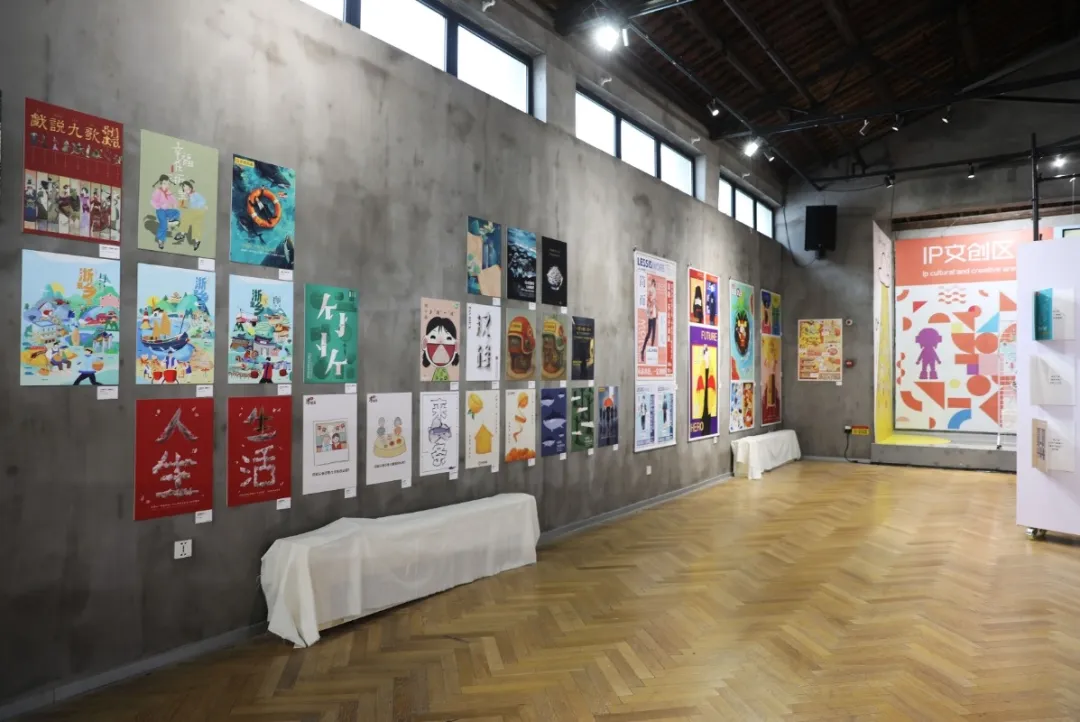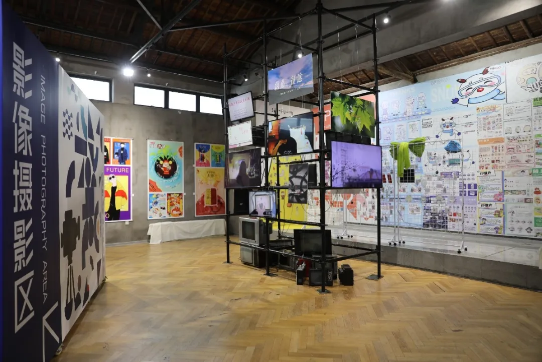 展覽現(xiàn)場(chǎng)分為平面設(shè)計(jì)區(qū)、影像攝影區(qū)與IP文創(chuàng)區(qū)三大板塊,涵蓋海報(bào)設(shè)計(jì)、書籍設(shè)計(jì)、IP設(shè)計(jì)、微電影、攝影等作品類型,呈現(xiàn)了兩岸高校在數(shù)字媒體和視覺傳達(dá)藝術(shù)設(shè)計(jì)中的探索與成果。