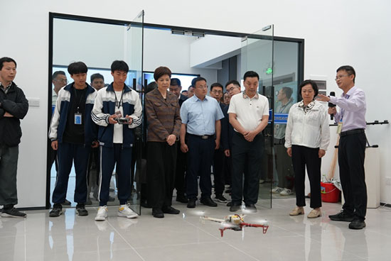 考察團一行還在海寧職高黨委書記朱曉明帶領下,參觀學校航空實訓基地、無人機實訓基地、新能源汽修實訓基地、皮革服裝實訓基地、電商實訓基地,實地了解黑水學生上課情況。