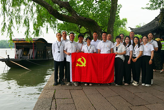 這艘承載著中國共產(chǎn)黨誕生歷史的紅船,靜靜停泊在碧波蕩漾的南湖之上,向世人訴說著“開天辟地、敢為人先”的壯麗篇章。范壽鵬現(xiàn)場講授微黨課,強調(diào)“紅船精神”是黨的根脈所在,全體黨員要從中汲取奮進力量,立足職業(yè)教育,勇當(dāng)新時代的“擺渡人”。各支部成員在紅船前莊嚴(yán)合影,以影像定格對初心的堅守。