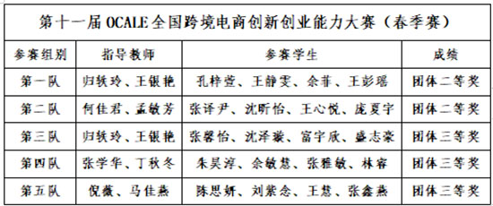 第十一屆OCALE全國跨境電商創新創業能力大賽(春季賽)是中國國際貿易學會主辦,大賽以競爭博弈為形式,搭建產教融合、校企合作的橋梁,旨在提升學生系統化的思考決策能力。本次大賽吸引了來自全國24所中職學校的129支學生參賽隊,于4月27日至29日進行了12個回合的角逐,最終該校金貿學部派出的6支隊伍獲得了全國團體二等獎2項、三等獎3項的好成績。