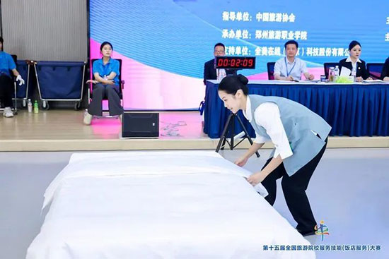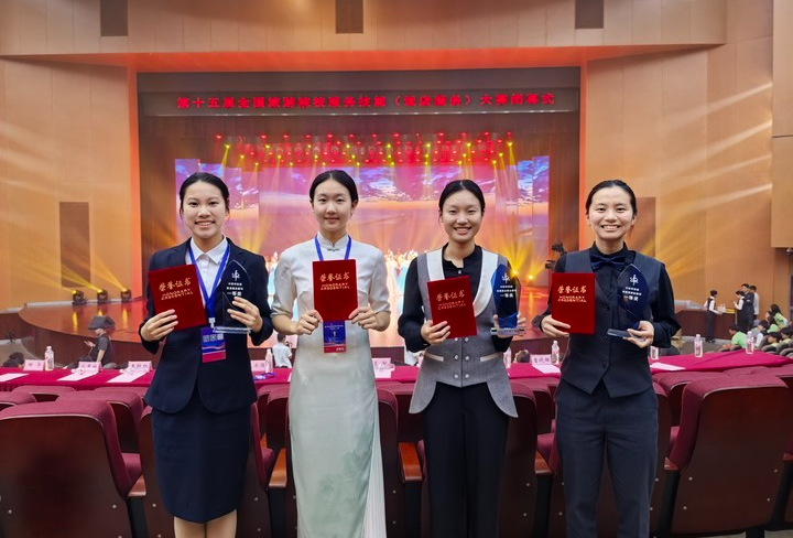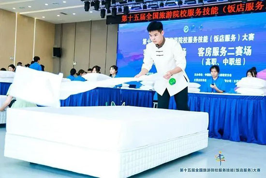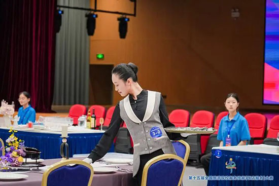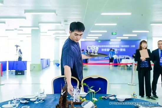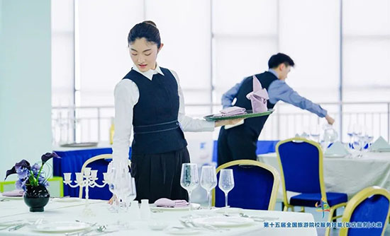 本次大賽匯聚全國28個省、自治區(qū)、直轄市的185所院校、596 名選手參賽,分本科院校組、高職高專院校組和中職學(xué)校組,設(shè)中餐宴會擺臺、西餐宴會擺臺、客房服務(wù)、雞尾酒調(diào)制四大競技模塊。各項目融合理論考核、英語測試、現(xiàn)場實操三重考核,全面考查學(xué)生飯店服務(wù)綜合能力。這場覆蓋全國28個省市的行業(yè)頂級賽事,堪稱“飯店服務(wù)界的奧林匹克”。學(xué)校選手優(yōu)異成績的背后,是日均12小時的技能淬煉與超越 28省的競技印證,更彰顯了參賽學(xué)生的拼搏精神與指導(dǎo)教師團(tuán)隊的匠心培育。