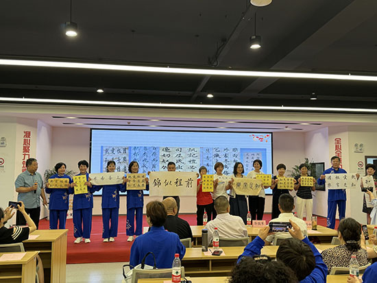 在“藝韻流芳”篇章中,來傳良渾厚的《人生沒有回頭路》唱出歲月沉淀的智慧,健身氣功班學員以《八段錦》演繹天人合一的東方哲學,而書法班教師孫初亮帶領學員現(xiàn)場展示作品彰顯翰墨風骨,一幅幅遒勁大字如銀鉤鐵畫,筆墨游走處,是老年群體對傳統(tǒng)文化的守護與創(chuàng)新。