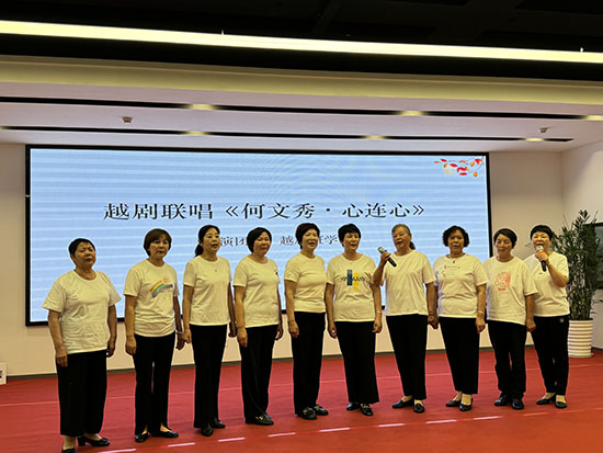 壓軸登場的《何文秀·心連心》十人聯(lián)唱,將整場展演推向高潮。學員們以戲腔唱響“社區(qū)共建心連心”,在百年越劇的婉轉旋律中注入新時代社區(qū)精神。當十位銀發(fā)表演者攜手謝幕時,舞臺仿佛化作跨越時空的橋梁——一頭連著戲曲博物館里的珍貴戲服,一頭通向智慧社區(qū)里的數(shù)字課堂。