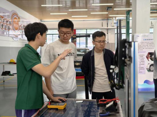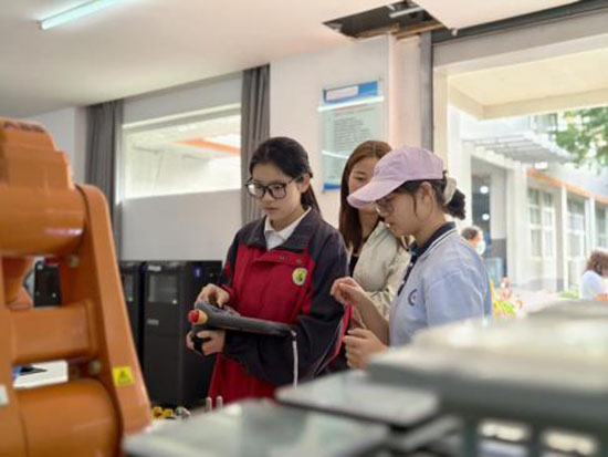 家長與初三學(xué)子沉浸式探秘職業(yè)教育現(xiàn)場,護理專業(yè)學(xué)生示范標準化血壓測量流程,指導(dǎo)學(xué)生體驗測血壓,學(xué)生現(xiàn)場演示工業(yè)機器人,人機協(xié)同操作界面,展現(xiàn)未來工廠的智慧圖景;計算機網(wǎng)絡(luò)實訓(xùn)室讓參觀者親身感受數(shù)字媒體藝術(shù)的創(chuàng)作魔力;新能源車模組拆解演示與智能檢測設(shè)備操作,完整呈現(xiàn)現(xiàn)代汽修技術(shù)生態(tài)。在這里職業(yè)教育不再是一個抽象概念,而是可觸摸、可參與、可延續(xù)的未來職業(yè)DNA培育計劃!