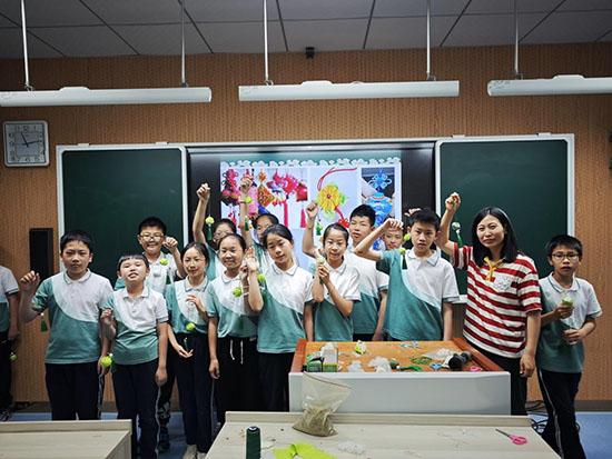 看似小巧的蓮蓬香袋,制作起來卻大有學問。在邵老師的細致指導下,同學們一步步完成創作:先串聯裝飾流蘇,再穿針引線縫制香袋主體。盡管針線活對六年級學生有些挑戰,但邵老師耐心地為每位孩子示范技巧,手把手糾錯指導。隨后,大家裝入清幽的艾草香料,封口收邊,最后用小巧的白珍珠點綴成“蓮子”,一個個精致可愛的蓮蓬香袋便躍然掌心。